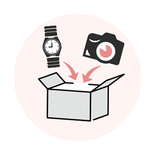 6.梱包キットに、買取依頼品を入れ、同梱されていた宅急便着払伝票を箱に貼る